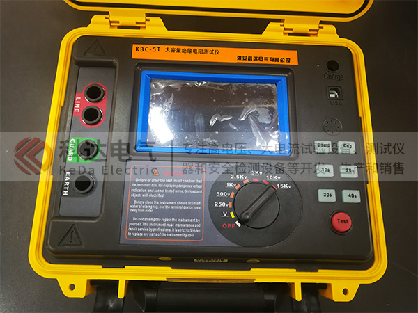KBC-5T大容量絕緣電阻測試儀是我公司精心研發(fā)的一款大容量絕緣電阻測試儀,儀器擁有完善的各種絕緣電阻參數(shù)測試功能和卓越的抗干擾能力,能用于變電站等有強感應電環(huán)境下特高壓、大容量高壓電氣設備、輸電線路絕緣電阻的測試。儀器采用真彩觸摸屏,所有測試數(shù)據(jù)及電池電量同屏顯示一目了然,旋鈕開關和按鍵組合使得操作非常簡單。儀器內置了使用說明書,用戶無需費力記憶操作方法,點擊屏幕的“HELP”即可彈出操作方法,有效指引用戶操作儀器。儀器具有快速放電功能并自動監(jiān)測被測物帶電電壓,電壓超過36V自動禁止測試有效保護儀器和操作人員。